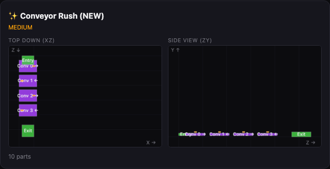 HardMoving conveyor belts that push players sideways in alternating directions. Players must fight the push to stay on the belt.