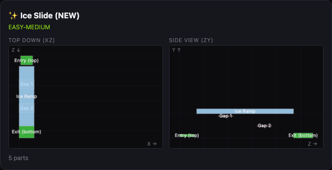 HardA long descending ice slide with gaps that drop players into kill bricks. Momentum carries players through — you can't slow down.